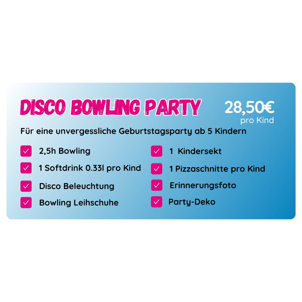 Hier kannst Du Deine Bowlingbahn mit Party Package fix reservieren. Eine Reservierung unterscheidet sich von der Vormerkung dadurch, dass wir Dir fix zusagen, dass Du für Deine gewünschte Uhrzeit die Bahn zugeteilt bekommst.